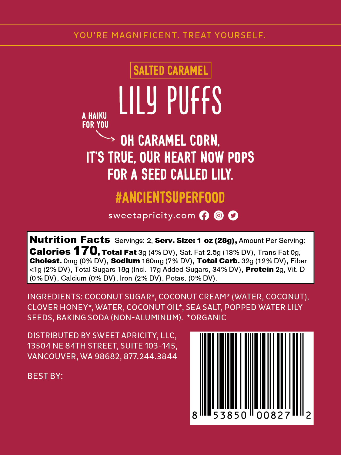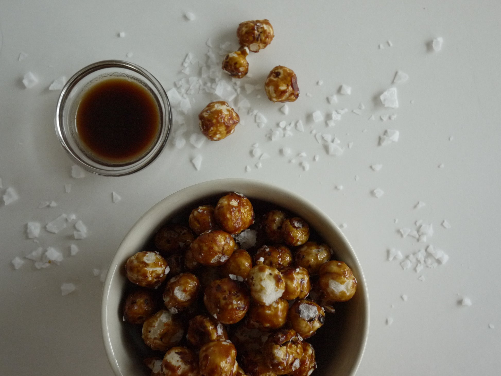Our Salted Caramel Lily Puffs are made from popped water lily seeds and are covered in our Sea Salted Caramel Sauce so you can indulge in a delicious snack without any guilt! They're just like caramel corn, but are Paleo/AIP stage 2 re-intro, dairy-free, non-GMO, grain-free, and made with simple and healthy ingredients! We were inspired to create our Lily Puffs after feeling nostalgic for warm evenings at the carnival, nights out at the movies, and snacking on freshly popped caramel corn.